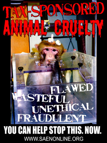 Riveting poster illustrating the arguments against animal experiments.